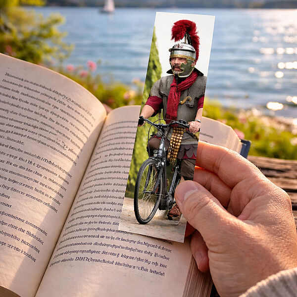 Damit verbindet das Lesezeichen zwei Erlebnisse: die archäologischen und historischen Angebote der Römerregion Chiemsee und den Besuch der Römer-Ausstellung im Lokschuppen Rosenheim.